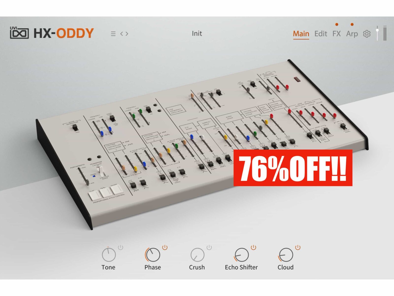 UVIの最新シンセ『HX-ODDY』が、ムチャ安になっています。短期セールです。